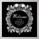 Esta placa de boas-vindas para festa de Halloween com caveiras góticas pode ser personalizada com suas informações em tipografia elegante. Criado por Thisisnotme©