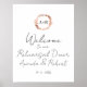Um simples monograma em grinalda de rosa em folha de ouro bege sinal de boas-vindas para jantar de ensaio. Sinal de boas-vindas moderno boho para jantar de ensaio editável, personalizável, fonte manuscrita caligráfica, simples, elegante.