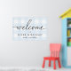 Esta placa de boas-vindas apresenta um design xadrez atemporal com um cabeçalho de boas-vindas em caligrafia moderna. A placa pode ser personalizada para se adequar a qualquer evento.