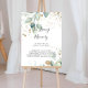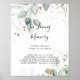 Esta placa de caligrafia de eucalipto dourado em memória querida é perfeita para um casamento rústico ou chá de noiva. Este design artístico apresenta folhagem dourada e verde desenhada à mão com aquarela, inspirando beleza natural.