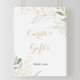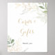 Esta placa de cartões e presentes com folhagem verde dourada é perfeita para um casamento rústico ou chá de noiva. Este design artístico apresenta folhagem dourada e verde desenhada à mão em aquarela, inspirando beleza natural.