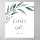 Esta placa de cartões e presentes de eucalipto roxo e verde é perfeita para um casamento moderno ao ar livre ou chá de noiva. O design botânico simples e elegante apresenta folhagens em aquarela com sotaques de lavanda e roxo escuro. A linha de texto na parte inferior da placa pode ser personalizada com a data, os nomes da noiva e do noivo, ou uma mensagem curta como "Obrigado". Esta placa pode ser usada para um casamento ou qualquer evento ou festa.