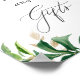 Esta linda placa de cartões e presentes apresenta folhas de palmeira tropicais com caligrafia escrita em um fundo branco. É perfeita para combinar com o seu tema e cores.