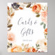 Este letreiro de cartões e presentes de flores terrosas rústicas é perfeito para um casamento de outono ou chá de noiva. O elegante design em tons terrosos apresenta flores rústicas em aquarela em tons de terracota, cobre, laranja queimado, pêssego, rosa rosado e branco creme com estilo boêmio vintage. A linha de texto na parte inferior do letreiro pode ser personalizada com a data, os nomes da noiva e do noivo, ou uma mensagem curta como "Obrigado". Este letreiro pode ser usado para um casamento ou qualquer evento ou festa.