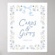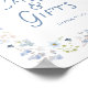 Esta placa de cartões e presentes para chá de noiva com florais azuis ajuda a guiar os convidados até a mesa de presentes de uma maneira bonita e sofisticada. Os florais suaves e o detalhe do laço se coordenam perfeitamente com o conjunto de convites do seu chá de noiva.