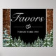 Placa de lembrancinhas de casamento. Madeira marrom rústica, fundo nevado e floresta nevada. Estilo country vintage aconchegante. Mais itens estão disponíveis neste estilo em nossa loja. Você pode editar o design ainda mais, alterar cores, fontes e adicionar texto extra clicando no link "personalizar ainda mais".