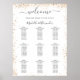 Um fundo branco de na moda, decorado com poeira falsa dourada. Personalize e adicione seus nomes e nomes de convidados. Modelos para 9 mesas. Traseira: sem design