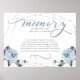 Floral em Azul Poeira para combinar com o tema do seu casamento, Sinal de Cerimônia de Casamento em Memória de Amor. Liste os nomes de seus familiares queridos ou substitua por um sentimento ou oração. Rosas em aquarela, folhas e frutos silvestres em azul poeira moderno e elegante rodeiam uma moldura prateada em estilo geométrico de terrário com folhagens verde-sage. Personalize o texto, o estilo da fonte, a cor e o tamanho. Arte original criada para a BarefootBride™ por © WhimsicalArtwork™ - Esta é parte de uma Suite de Papelaria de Casamento completa com papelaria de casamento, chá de bebê e outros eventos.