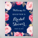 Poster Placa de Chá de Panela Rosa Floral Azul Marinho Mo