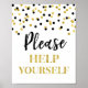 Placa de Coma à Vontade para chá de bebê, chá de noiva, festa de aniversário ou casamento em um padrão de confete preto e dourado.