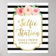 Placa de pôster de Estação de Selfie para chá de bebê, chá de noiva ou casamento em padrão de listras preto e branco clássico, flores em aquarela rosa rústica vintage e letras em estilo manuscrito dourado. Perfeito para um chá de bebê, casamento ou chá de noiva.