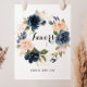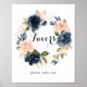 Esta placa de favores de grinalda floral de inverno elegante é perfeita para um casamento moderno ou chá de noiva. O design apresenta lindas flores pintadas à mão em azul escuro, azul, azul naval, rosa, blush, dourado e folhagens verdes, agrupadas em buquês elegantes.