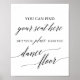 Este sinal de pista de dança com placa de identificação preta elegante é perfeito para um casamento simples. O design neutro apresenta um pôster minimalista decorado com tipografia romântica e caprichosa. O sinal lê "você pode encontrar seu assento aqui, mas seu lugar é na pista de dança". Enquadre este sinal e coloque-o na mesa de recepção com suas placas de identificação.