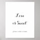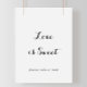 Esta placa de letra cursiva moderna amor é doce é perfeita para um casamento rústico ou chá de noiva. O design simples e elegante apresenta tipografia clássica e sofisticada em preto e branco.