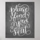 Pôster Placa de Letra Manual Encontre Seu Assento