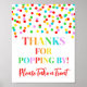 Obrigado por passar pela placa de letreiro de pipoca para chá de bebê, festa de aniversário ou casamento com padrão de confete arco-íris.