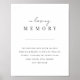 Sinal simples e elegante é perfeito para colocar na mesa de memorial do seu casamento ou exposição em homenagem aos entes queridos que faleceram. Personalize o cabeçalho e o texto do corpo (mostrado com "Em Memória Carinhosa" e um breve poema) em letra cursiva suave e letras maiúsculas clássicas.