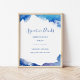 Placa de menu de bebidas de casamento impressa personalizada com uma borda abstrata em aquarela azul para combinar com nossa coleção Sapphire Tide. Personalize com os detalhes do seu menu de bebidas personalizadas. Use as ferramentas de design para editar as fontes e cores ou faça o upload de suas próprias fotos para criar uma placa de boas-vindas de casamento única.