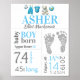 Poster Placa de Nascimento de Menino Bebê Azul com Pegada