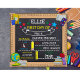 Apresentamos nosso quadro-negro personalizável, perfeito para capturar as memórias do primeiro dia de aula! Com espaços para o nome da criança, série, professor, data, idade, escola, cor favorita e aspirações para o futuro, este quadro é uma ótima maneira de celebrar a personalidade única da criança. O design apresenta réguas de madeira realistas e fofas e elementos escolares como bordas, adicionando um toque de fantasia à tradicional foto do primeiro dia de aula. Compre agora e faça o primeiro dia de aula da criança ainda mais especial!