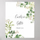 Este cartão floral simples de eucalipto e placa de presente é perfeito para um casamento moderno ou chá de noiva. O design apresenta belas folhas verdes de eucalipto pintadas à mão artisticamente, dispostas em formas geométricas, inspirando beleza natural.