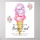 Sinal caprichoso de noivado / chá de panela com ilustração de aquarela de bolas de sorvete rosa e roxo em um cone de waffle e flores cor-de-rosa. O texto diz "coloque seu cartão de receita aqui para a noiva usar ano após ano."