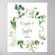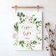 Este elegante letreiro de cartões e presentes com folhagem de eucalipto é perfeito para um casamento tropical ou chá de noiva. O design apresenta belas folhas verdes de eucalipto pintadas à mão artisticamente e dispostas em formas geométricas, inspirando beleza natural. Torne a linha de texto na parte inferior do letreiro sua, incluindo a data, os nomes da noiva e do noivo ou uma mensagem curta como "Obrigado". Este letreiro pode complementar um casamento, qualquer evento ou festa.