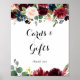 Este cartão de caligrafia rústica de outono e letreiro de presente é perfeito para um casamento moderno ou chá de noiva. O design apresenta flores radiantes e graciosas pintadas à mão em burgundy, vermelho, azul-marinho, azul e blush, inspirando beleza natural.