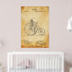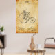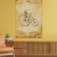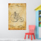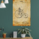 Uma invenção antiga de uma bicicleta ou velocipede patenteada em 1891, projetada para arte em parede em um fundo do estilo 'vintage' rústico.