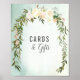 Cartões e presentes para os seus convidados para o chá de aspersão de bebê. spray floral de rosa branca elegante com fundo aquoso verde.