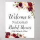Poster Placa Floral Boho Borgonha - Placa de Boas-Vindas