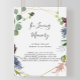 Esta placa geométrica dourada em borgonha em memória amorosa é perfeita para um casamento de inverno ou chá de noiva. O design boho elegante apresenta flores em tons de azul naval, rosa beijado e vinho com detalhes artísticos a lápis.