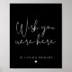 Esta placa "nós desejamos que você estivesse aqui" Em Memória Amorosa apresenta uma fonte manuscrita ousada e design minimalista moderno. Seu design preto e branco ousado torna-o perfeito para qualquer ocasião. Altere facilmente as cores e edite a *maioria* das palavras para atender às necessidades da sua ocasião. Esta placa é perfeita para o seu casamento ou evento minimalista, elegante ou moderno.