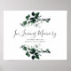 Esta placa memorial verde esmeralda em memória carinhosa é perfeita para um casamento boho. O design elegante, mas rústico, apresenta folhas escuras de água e eucalipto com um sentimento moderno da floresta boêmia.