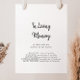 Esta placa moderna em memória com amor é perfeita para um casamento rústico ou chá de noiva. O design simples e elegante apresenta tipografia clássica e sofisticada em preto e branco.