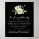 Um letreiro de mesa comemorativo de casamento que pode ser colocado em uma mesa de exposição. Uma rosa branca simples, elegante e sofisticada adiciona distinção ao topo deste letreiro de casamento. O texto branco fica lindo contra o fundo preto profundo. Em Memória Carinhosa é escrito em uma fonte moderna e elegante que é muito popular. Há uma declaração comemorativa atenciosa e, em seguida, o falecido pode ser listado. Este é parte do Autumn Roses, uma coleção de letreiros e papelaria de casamento que tem muitos modelos para você criar facilmente letreiros personalizados para a cerimônia e recepção do seu casamento. Você deve ver um link para isso nesta página. Por favor, entre em contato comigo se você não conseguir encontrar o link ou precisar de ajuda com um item.