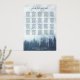 Este elegante quadro de 20 mesas de assentos de casamento apresenta um design rústico, mas elegante, com uma suave borra azul ou floresta de pinheiros cobrindo uma montanha arborizada. O título diz "por favor, encontre sua mesa" na caligrafia de scripts antigos. Há espaço para os nomes do casal e da data do casamento. Este gráfico tem atribuições de mesa para 200 convidados - 10 pessoas por mesa. Perfeito para um casamento no exterior ou na montanha.