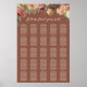 O gráfico de assentos de hóspedes contém seus nomes em letras elegantes de script de caligrafia, com sua data de casamento e suas mesas de hóspedes por baixo. Tamanho grande fornece espaço para até 25 mesas. Projetado para maquear nosso casamento e coleção de eventos Rustic Bloom, com florais de aquarela e folhagem em tons de terra mutados no outono.