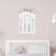 Uma elegante borda de rosas cor-de-rosa escamoteadas em folhagem verde-sábio começa neste gráfico alfabético quinceanera. Bem-vindo é escrito em uma fonte de script de tendência popular. Quatro colunas permitem adicionar facilmente nomes e mesas à lista. Se você precisar de mais espaço, você pode fazer o texto menor.