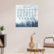 Este assento de casamento rústico de 27 mesas apresenta uma cena de montanha com uma floresta de pinheiros azuis envoltos em neblina ou neblina. O título diz "por favor, encontre sua mesa" na elegante caligrafia do roteiro de lacy. Há espaço para os nomes dos casais e data do casamento. Este gráfico tem atribuições de mesa para 270 convidados no arranjo tradicional de 10 pessoas por mesa.