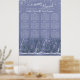 Gráfico de assentos de inverno de cinza azul e neve branca com até 12 mesas. Ideal para uma recepção de casamento no inverno para ajudar seu convidado a encontrar seu lugar. Apresenta uma mão original pintada de árvores de inverno pela arte ao lado do lago por Sarah Trett exclusivamente para www.mylittleedenweddings.com apenas no zazzle.