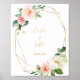 Este letreiro de cartões e presentes geométricos com verde e dourado é perfeito para um casamento rústico ou chá de noiva. O design apresenta lindas rosas pintadas à mão em branco, rosa e rosa claro e um toque de verde, adornando molduras geométricas douradas, inspirando beleza artística. Torne a linha de texto na parte inferior do letreiro sua, incluindo a data, os nomes da noiva e do noivo ou uma mensagem curta como "Obrigado". Este letreiro pode complementar um casamento, qualquer evento ou festa.