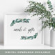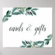 Projetada para combinar com nossa coleção de casamento Folhagem Abundante, esta placa botânica elegante informa aos convidados onde deixar seus cartões e presentes. Personalize com uma linha de texto personalizado em letras de caligrafia (mostrado com "Cartões e Presentes"), emoldurada por folhagens verdejantes em aquarela e folhas de eucalipto.
