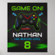 Acelere a festa do seu jogador com o sinal de festa de aniversário de jogos para rapazes! Este sinal de jogador define o tom para uma aventura épica em jogos, fazer-o a adição perfeita para a sua celebração de aniversário. Apresentando um vídeo game gráfico e texto personalizável!