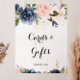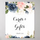 Este elegante cartão de flores de inverno e sinal de presentes é perfeito para um casamento moderno ou chá de noiva. O design apresenta lindas flores pintadas à mão em azul escuro, azul, azul-marinho, rosa, rosado, dourado e folhagens verdes, agrupadas em elegantes buquês.