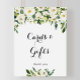 Esta placa de flores brancas de verde de outono e presentes é perfeita para um casamento rústico ou chá de noiva. O design apresenta elegantes peônias brancas em aquarela com folhagem verde. Torne a linha de texto na parte inferior da placa sua, incluindo a data, os nomes da noiva e do noivo ou uma mensagem curta como "Obrigado". Esta placa pode complementar um casamento, qualquer evento ou festa.