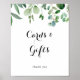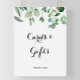 Este cartão botânico de eucalipto verde e placa de presente é perfeito para um casamento rústico ou chá de noiva. O design apresenta belas folhas verdes de eucalipto pintadas artisticamente à mão, montadas em buquês arrumados para embelezar seu evento.