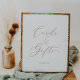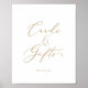 Este delicado sinal de cartões e presentes de caligrafia a ouro é perfeito para um casamento moderno ou chá de noiva. O design minimalista romântico apresenta uma tipografia adorável e elegante de cor amarelo-dourado champanhe sobre um fundo branco com uma aparência limpa e simples. A linha de texto na parte inferior do sinal pode ser personalizada com a data, os nomes da noiva e do noivo, ou uma mensagem curta como "Obrigado". Este sinal pode ser usado para um casamento ou qualquer evento ou festa.