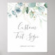 Este sinal de texto personalizado de cartões e presentes de folhagem arejada é perfeito para um casamento moderno. O design botânico elegante apresenta eucalipto em aquarela leve e arejada acentuado com folhas de brilho dourado caprichosas. Personalize a redação para dizer o que quiser! Este sinal pode ser usado para cartões e presentes, livro de visitas, hashtag de casamento, lembranças, barra de sobremesas - qualquer coisa! Pode ser usado para um casamento, chá de noiva, jantar de ensaio ou qualquer evento. A linha de texto na parte inferior do sinal pode ser personalizada com a data, os nomes da noiva e do noivo, ou uma mensagem curta como "Obrigado". Se você quiser vários sinais coordenados, personalize e adicione ao carrinho um de cada vez.