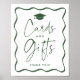 Adicione um toque na moda e moderno à sua celebração de formatura com este símbolo de presentes e cartas de quadros verdes modernos. Apresentando um boné de formatura no topo, a design exibe "Cartões e presentes" em letras verdes em negrito, emoldurada por uma borda verde ondulada contra um fundo branco. Personalize o sinal de inspiração retrorreflectora com seu próprio texto personalizado para torná-lo exclusivo para seu evento. Disponível em opções profissionais de impressão ou de download instantâneo, oferecendo flexibilidade e conveniência para as necessidades de planejamento de sua empresa. Perfeito para segundos graus e formandos, este sinal de tendências vai melhorar sua decoração e manter seus convidados comprometidos.